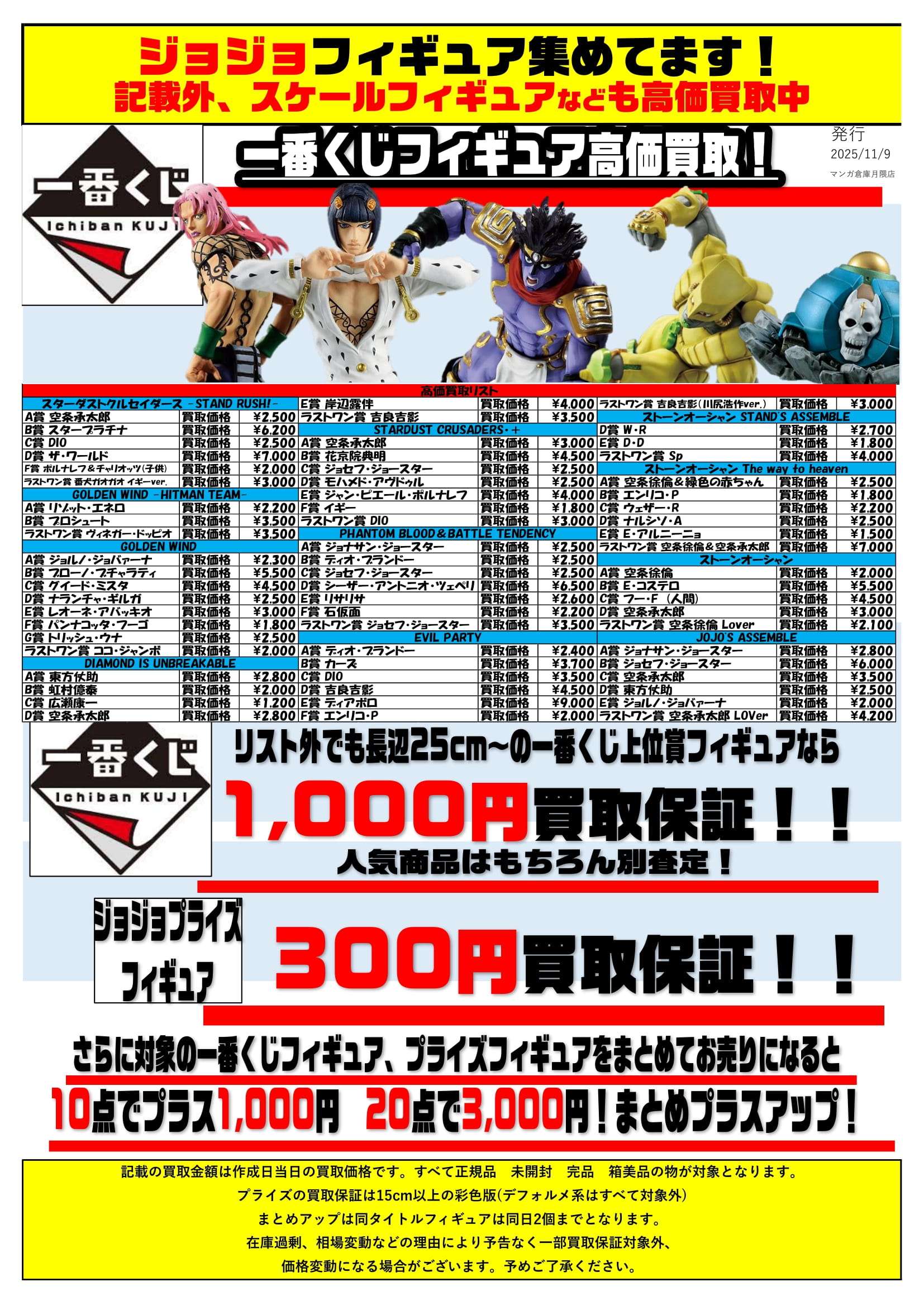 ジョジョシリーズの一番くじフィギュア買取表更新しました!