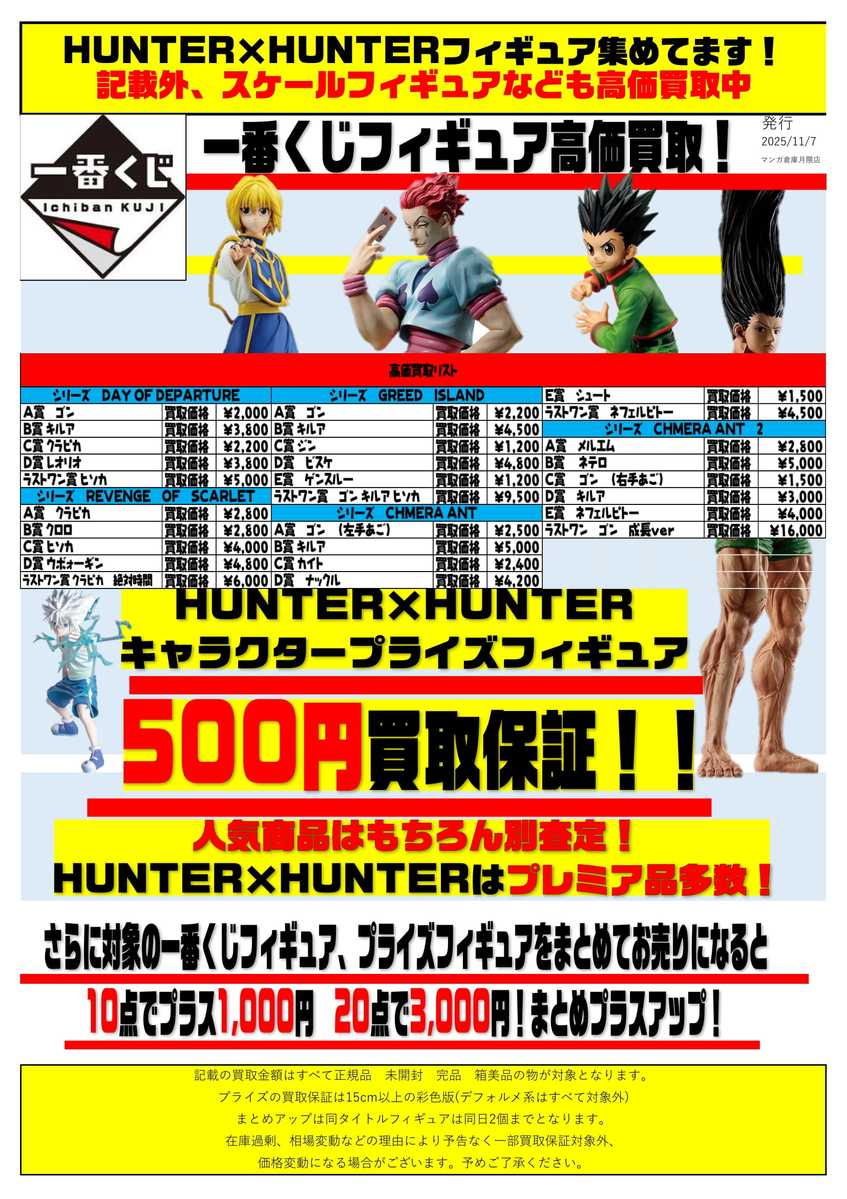 202511.07 おもちゃ ★ハンター×ハンター 他 一番くじフィギュア、プライズフィギュア強化買取中です!★ ハンター×ハンター 呪術、NARUTO 一番くじフィギュア、プライズフィギュアどちらも強化買取中です! ぜひ当店にお買取りさせてください!