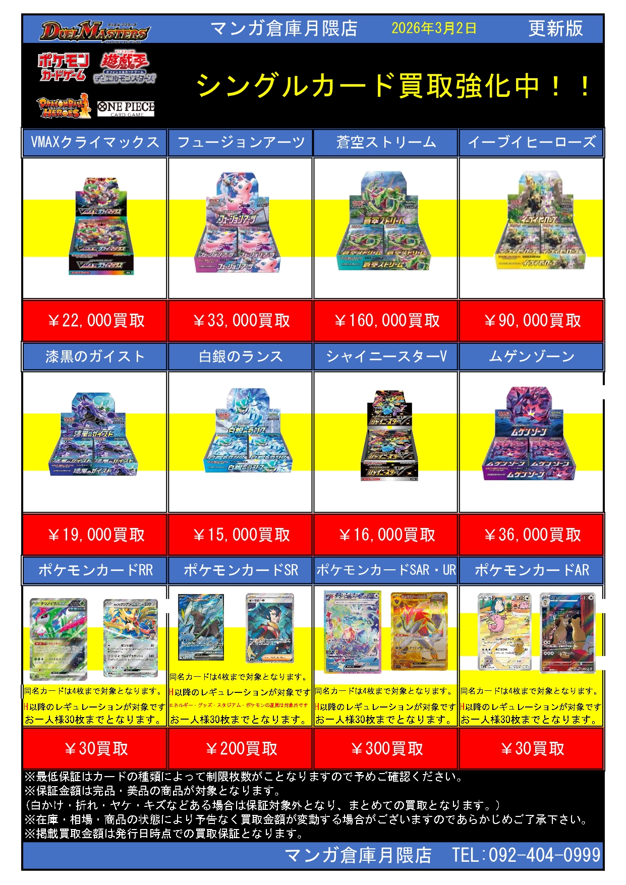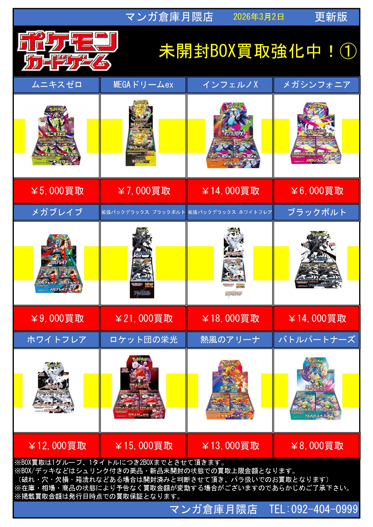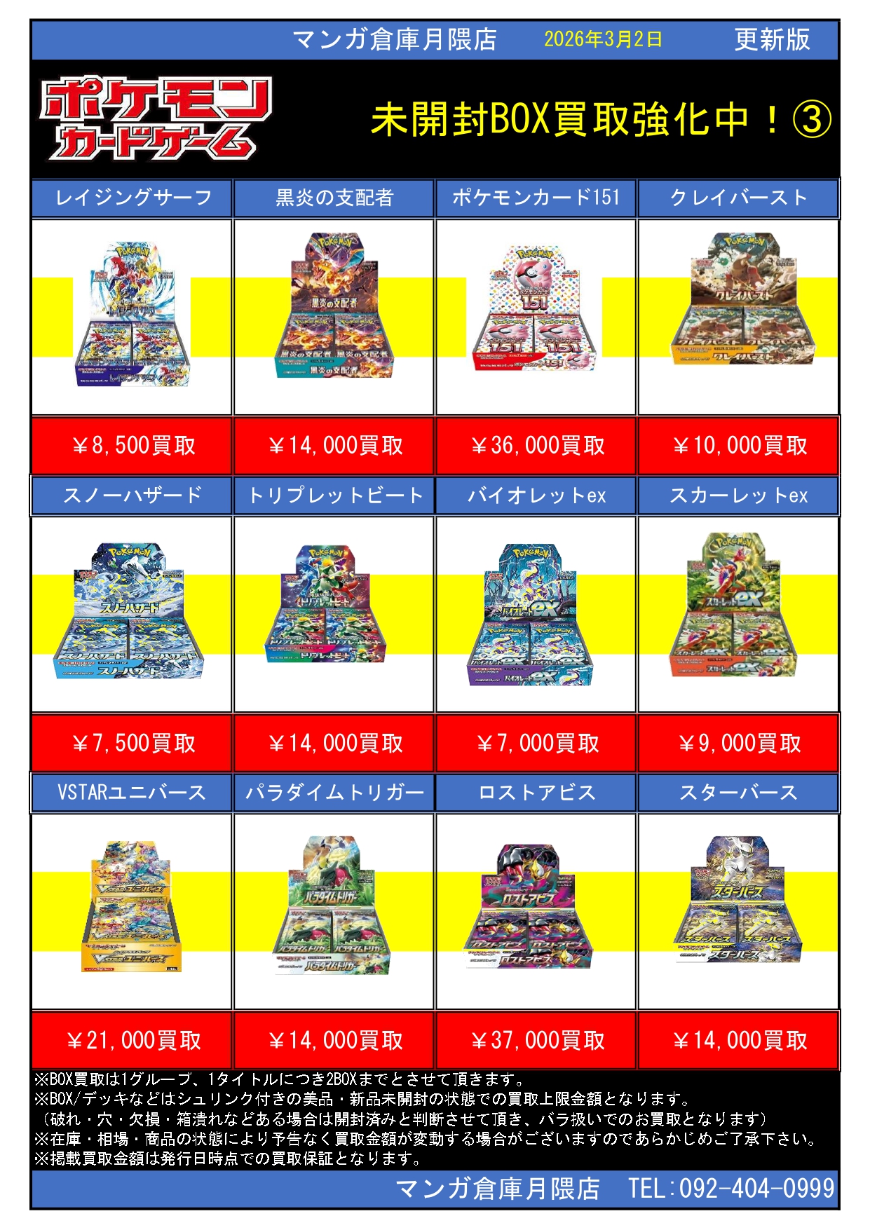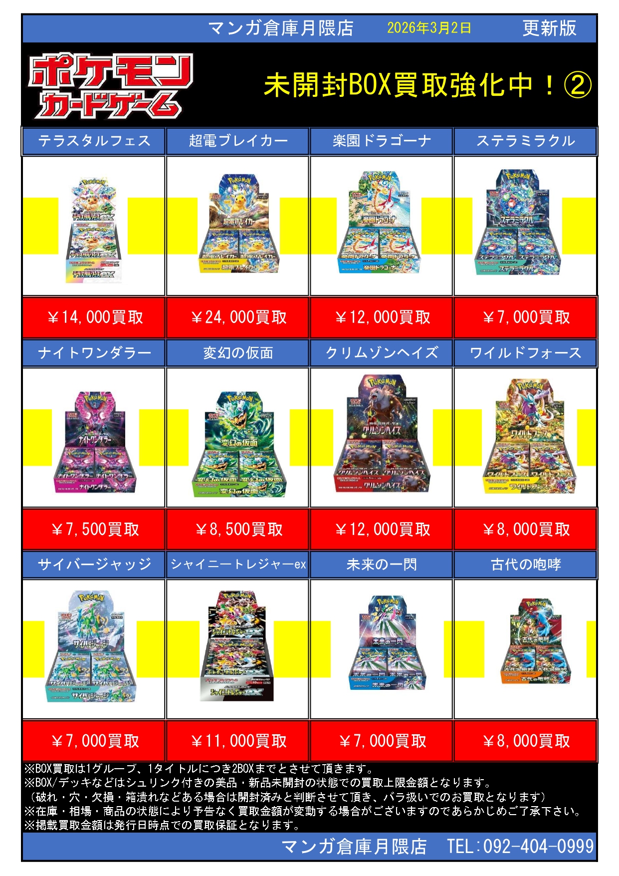 カードコーナーより、ポケカBOX買取金額変更いたしました!