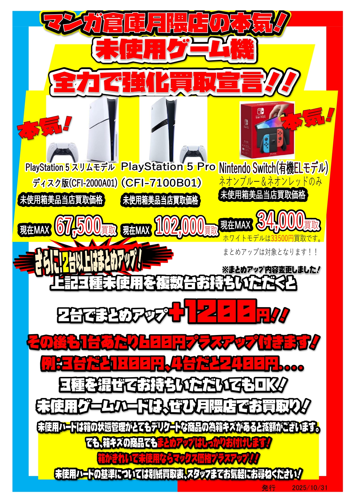 ゲームコーナーより、スイッチ未使用本体・まとめUP内容変更いたしました!