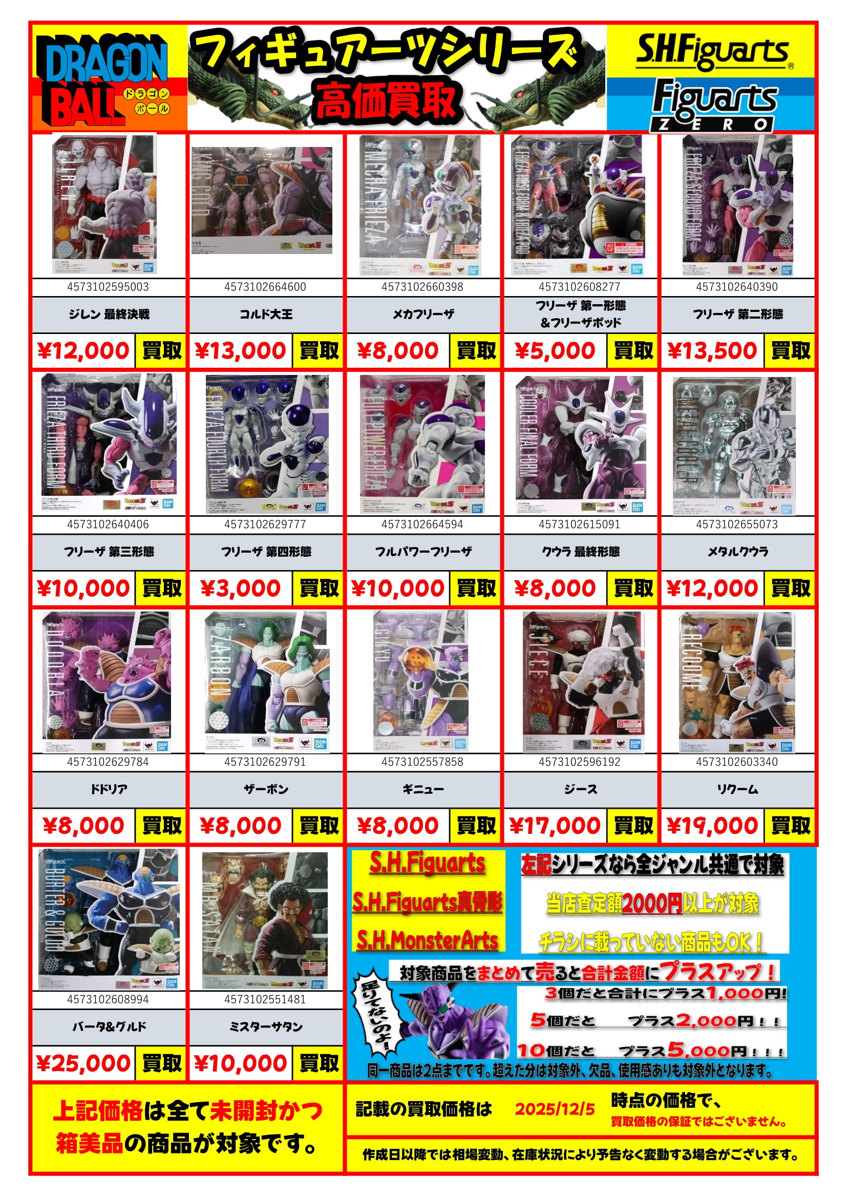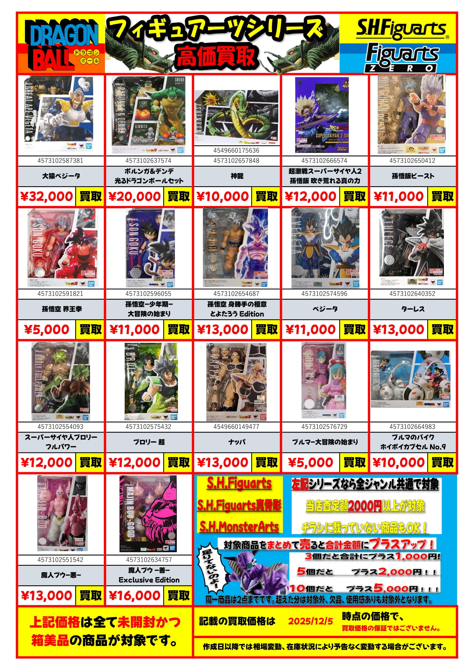 202512.05 おもちゃ ドラゴンボール一番くじ 最新SNAP COLLECTION2も強化買取中! ドラゴンボール一番くじ 最新SNAP COLLECTION2も強化買取中! フィギュアーツ、プライズフィギュア買取強化も継続中! お買取りはぜひ当店まで!