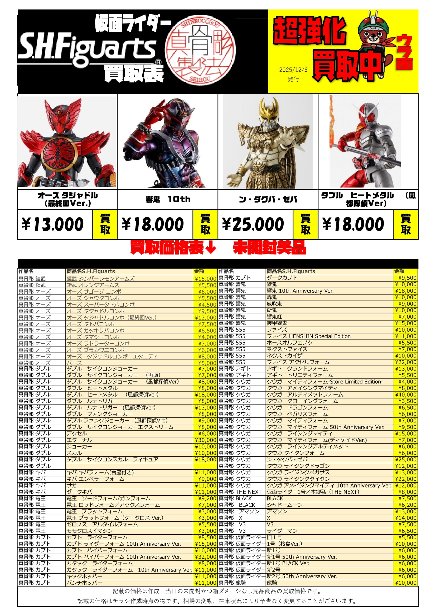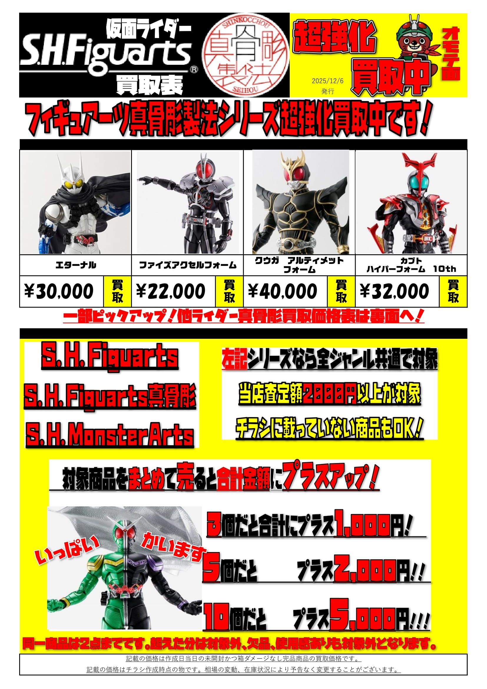 仮面ライダーフィギュアーツ真骨彫シリーズ高価買取継続中!