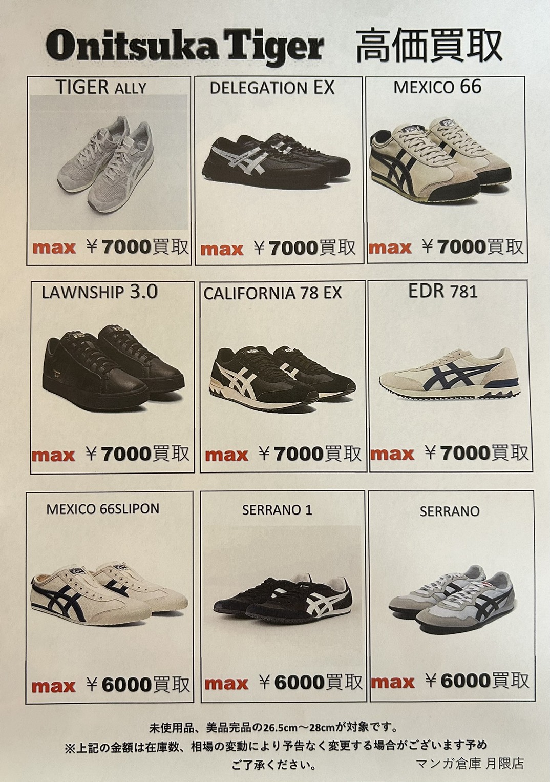 202604.05 ファッション 只今靴コーナーではonitsuka tigerのスニーカーを高価買取しております! 靴コーナーより! 只今靴コーナーではonitsuka tigerのスニーカーを高価買取しております! 是非一度お持ち下さい!