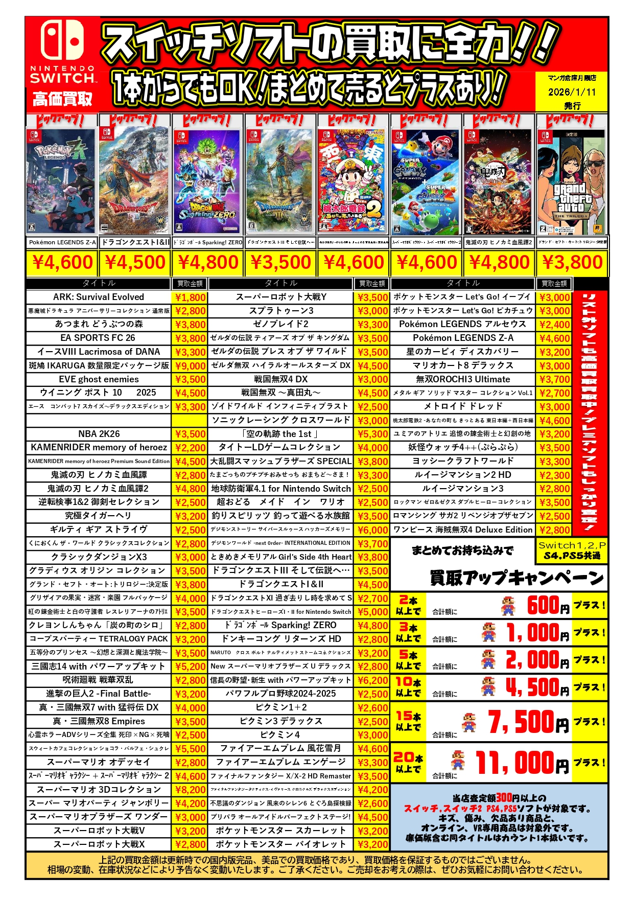 switchソフト買取更新しました!