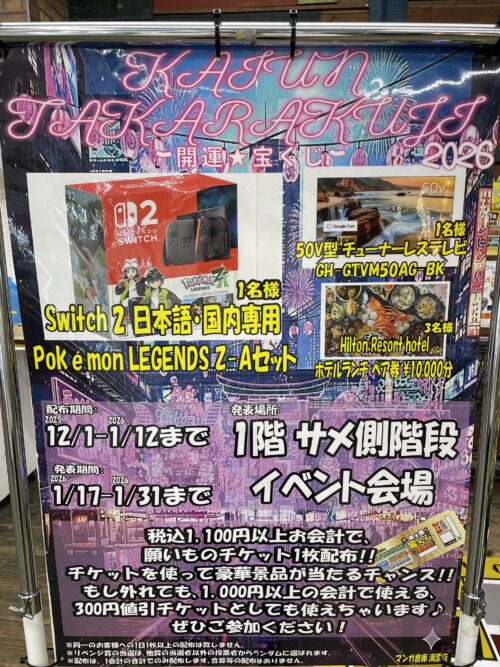 202512.01 店舗イベント 浦添店☆開運宝くじ開催⭐︎ さぁ今年も残りわずか! 浦添店今年最後のイベントとして宝くじを配布中 ¥1000以上お買い上げのお客様にレジにて 配布中 1階特設会場で好きな景品を書いて 箱に入れてね! 当選発表:R8/1/17-R8/1/31